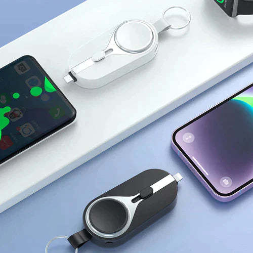 Introducing KeyPact Duo: A tiny titan in the world of power banks, engineered to supercharge your devices even amidst adventures. Whether it's your phone, tablet, or your trusty smartwatch, KeyPact Duo has got you juiced up!