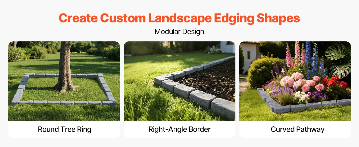 - Versatile Design: Our faux garden stone edging adapts easily to a wide range of outdoor layouts. Its modular construction allows seamless straight lines or creative curves. You can customize the shape to match your landscaping vision