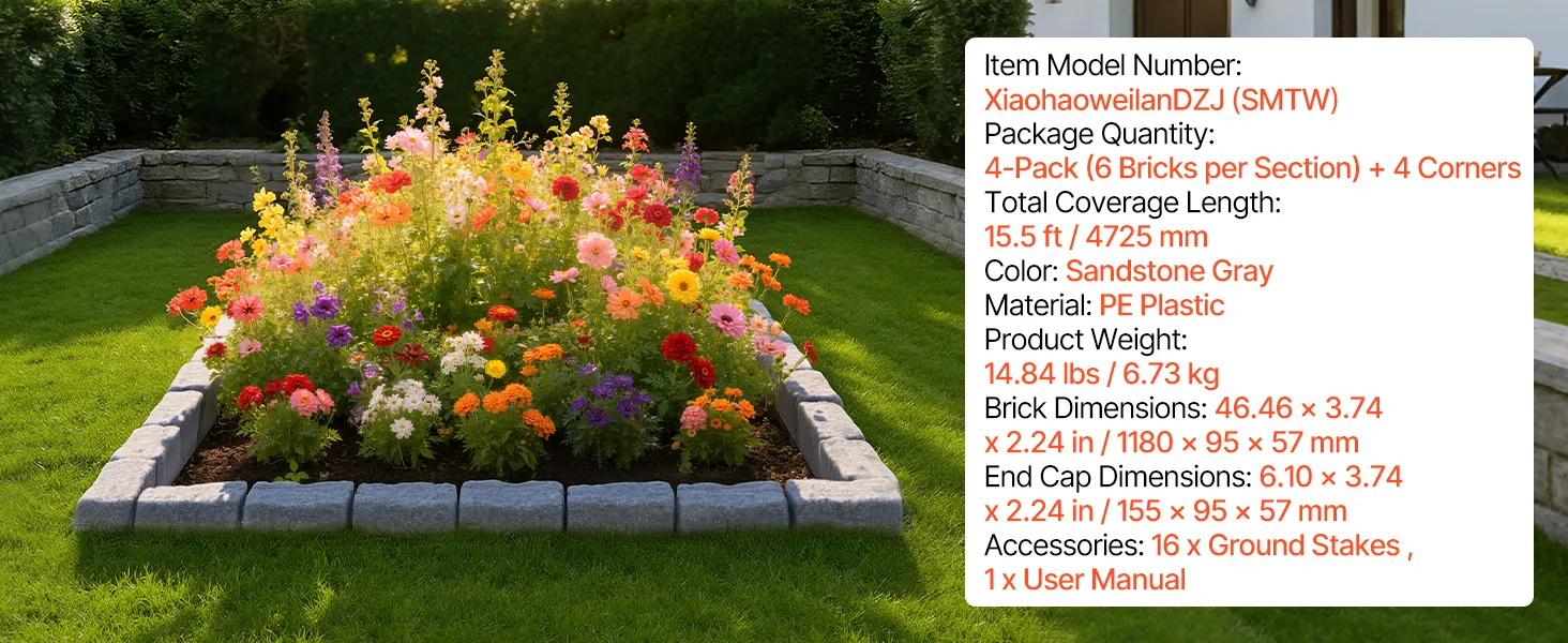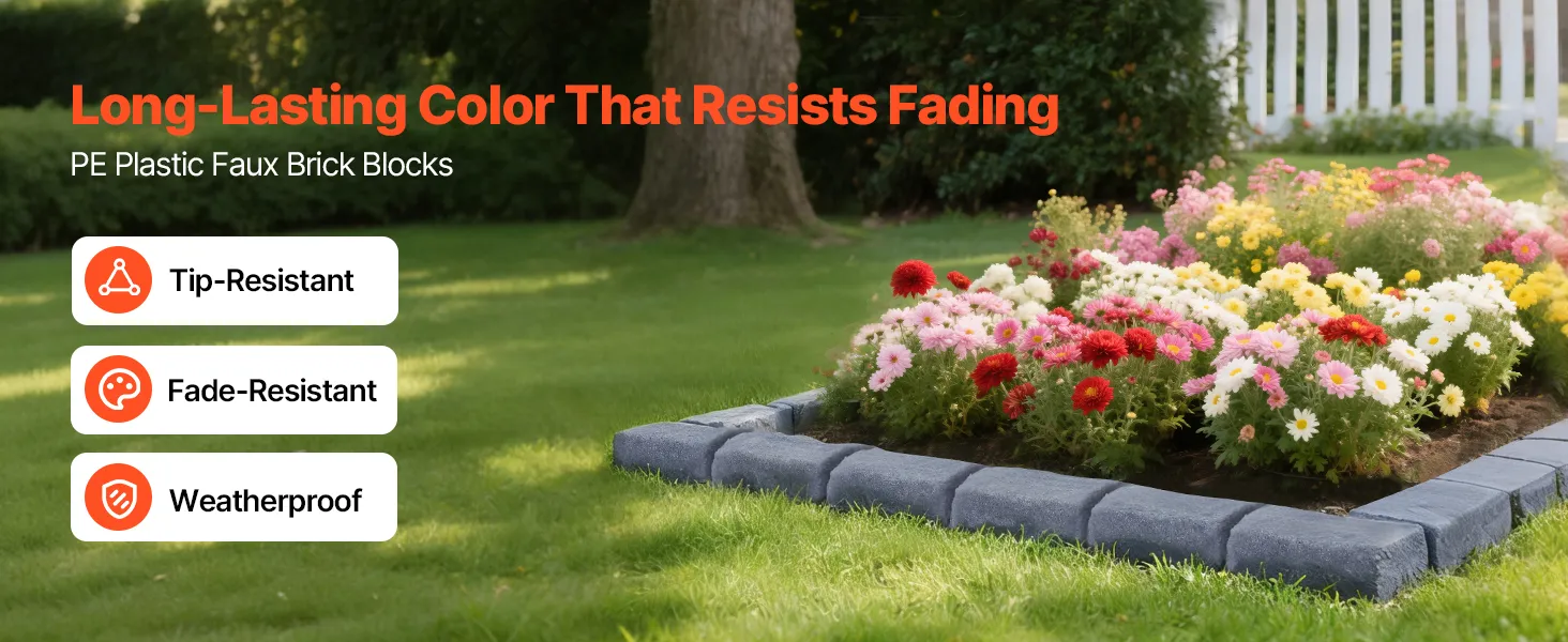 - All-Weather Durability: Crafted from premium PE plastic with a rotational forming process, this faux brick edging resists fading and corrosion over time. The textured surface replicates natural stone and withstands rain, snow, and sunlight exposure