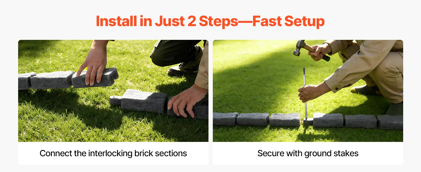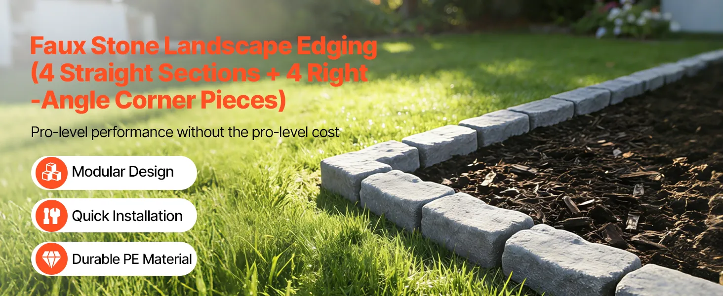 - Easy Installation: Designed for DIY use with sturdy anchoring hardware, the faux stone edging features a snap-lock system for quick setup. Ground stakes ensure secure placement in various soil types and keep it stable even in harsh outdoor conditions