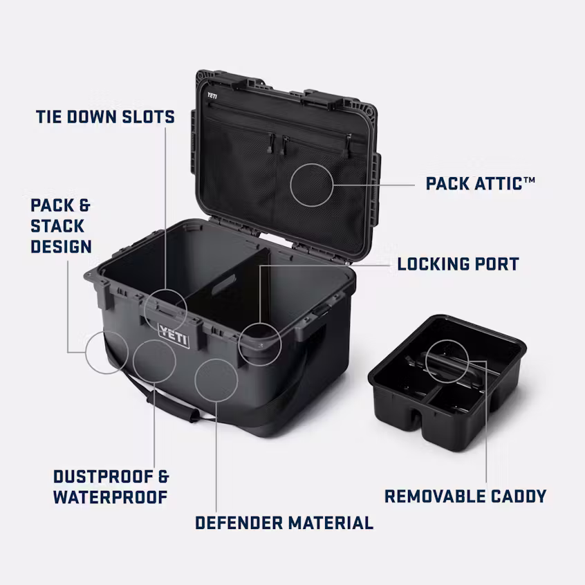 As the Goldilocks of our cargo family, theLoadOut GoBox 30 Gear Case is sized for every river,hunting, or overlanding trip. We've seen it used as acamp pantry, camera equipment case, first-aid kit,and tackle box - but that's just scratching the surface.Dustproof, waterproof, and virtually indestructible,it's built to be packed up, hauled out, and hold up towhatever you throw at it.
