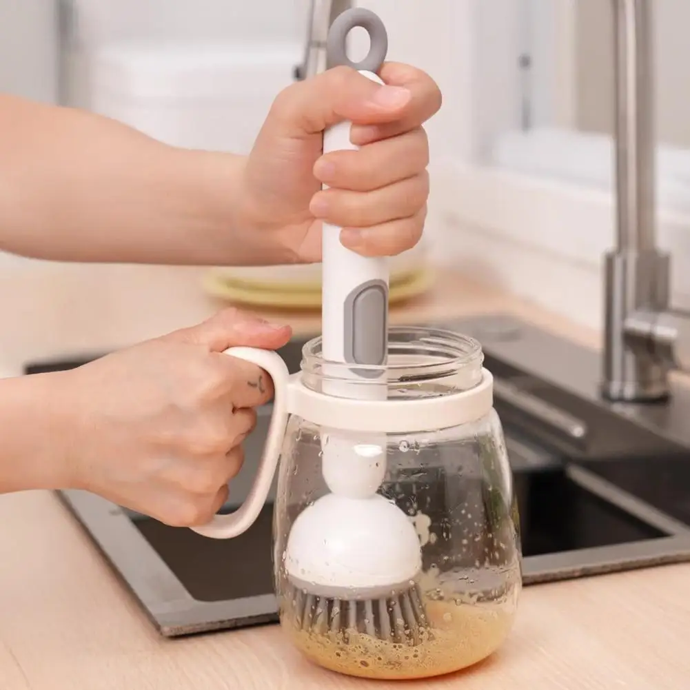 Long-Handled Dish Brush with Soap Dispenser and Rotating Brush Head
