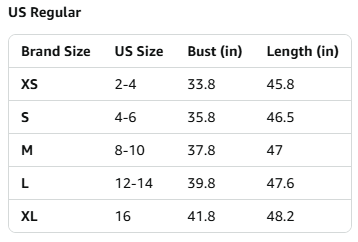 Size ---XS=(2-4), S=US(4-6), M=US(8-10), L=US(12-14), XL=US 16