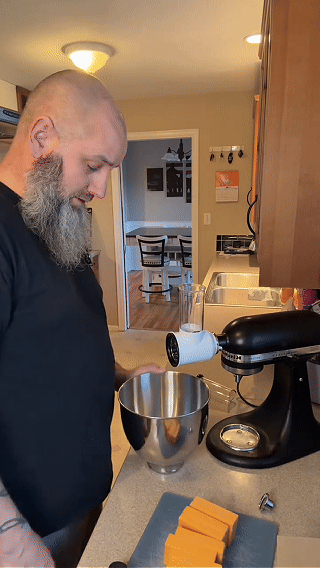 1. Attach the shredder to your KitchenAid stand mixer securely.