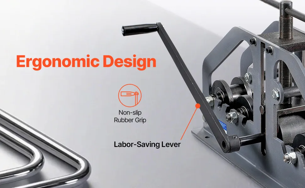 - Ergonomic Design: The manual crank on this pipe roll bender provides precise control and effortless operation, allowing you to bend pipes with ease. Its compact design occupies minimal space, making it perfect for your workshop or job site.